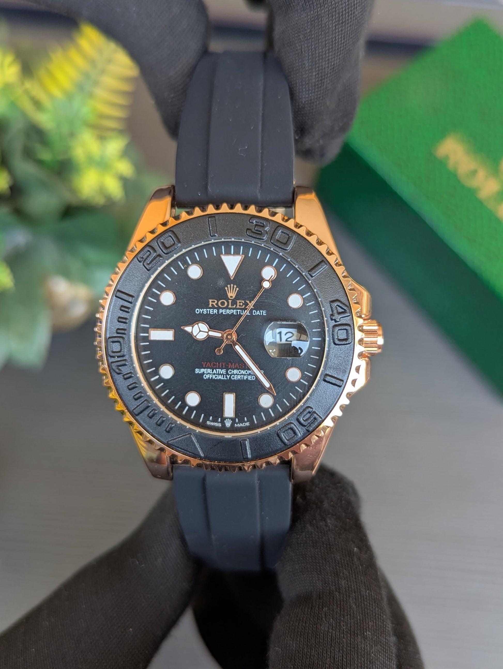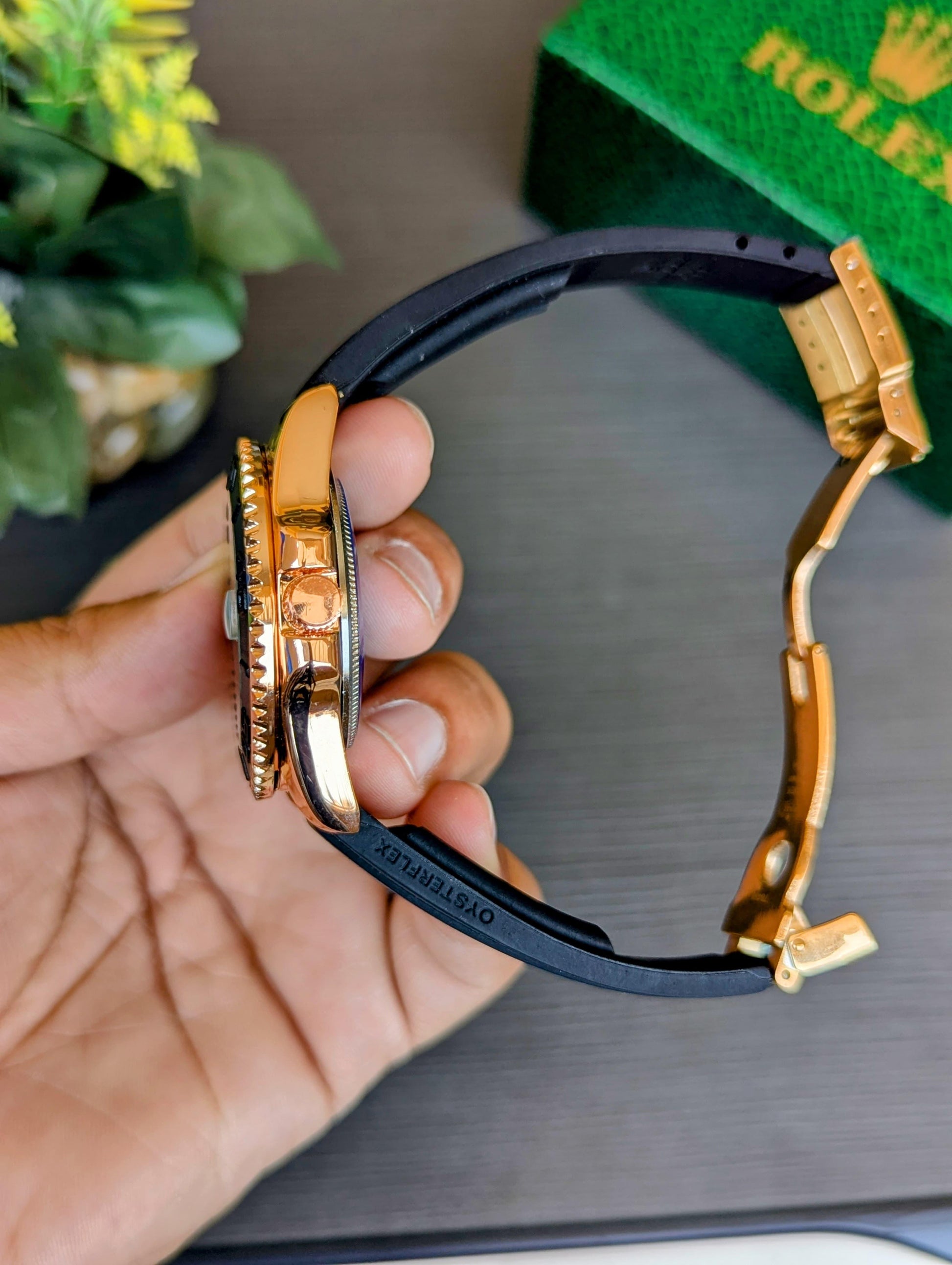 🖤✨ RLX Oyster Flex Strap Watch – Black with Golden Touch ⌚