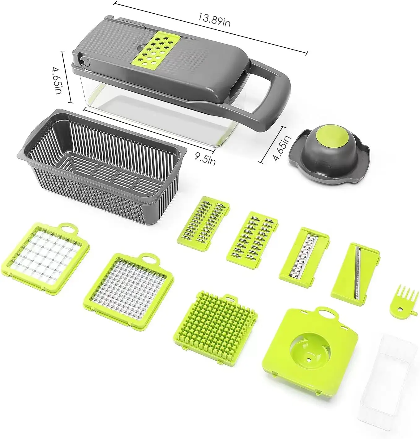 14-in-1 Multifunctional Vegetable Chopper Slicer Shredder with Basket