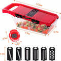 Multipurpose Functionality: Equipped with five different stainless steel blades, allowing for versatile cutting, slicing, grating, and julienning of vegetables and fruits.