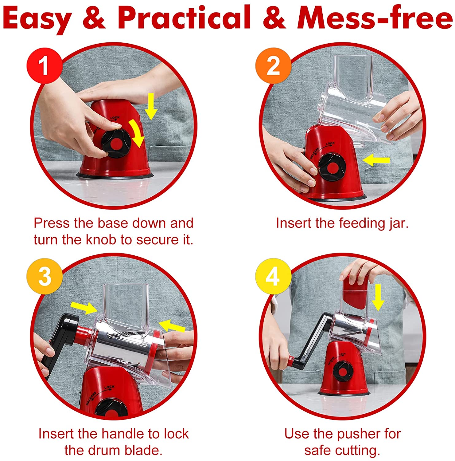Cheese Grater Rotary, Rotary Grater for Kitchen with 3 Drum Blades