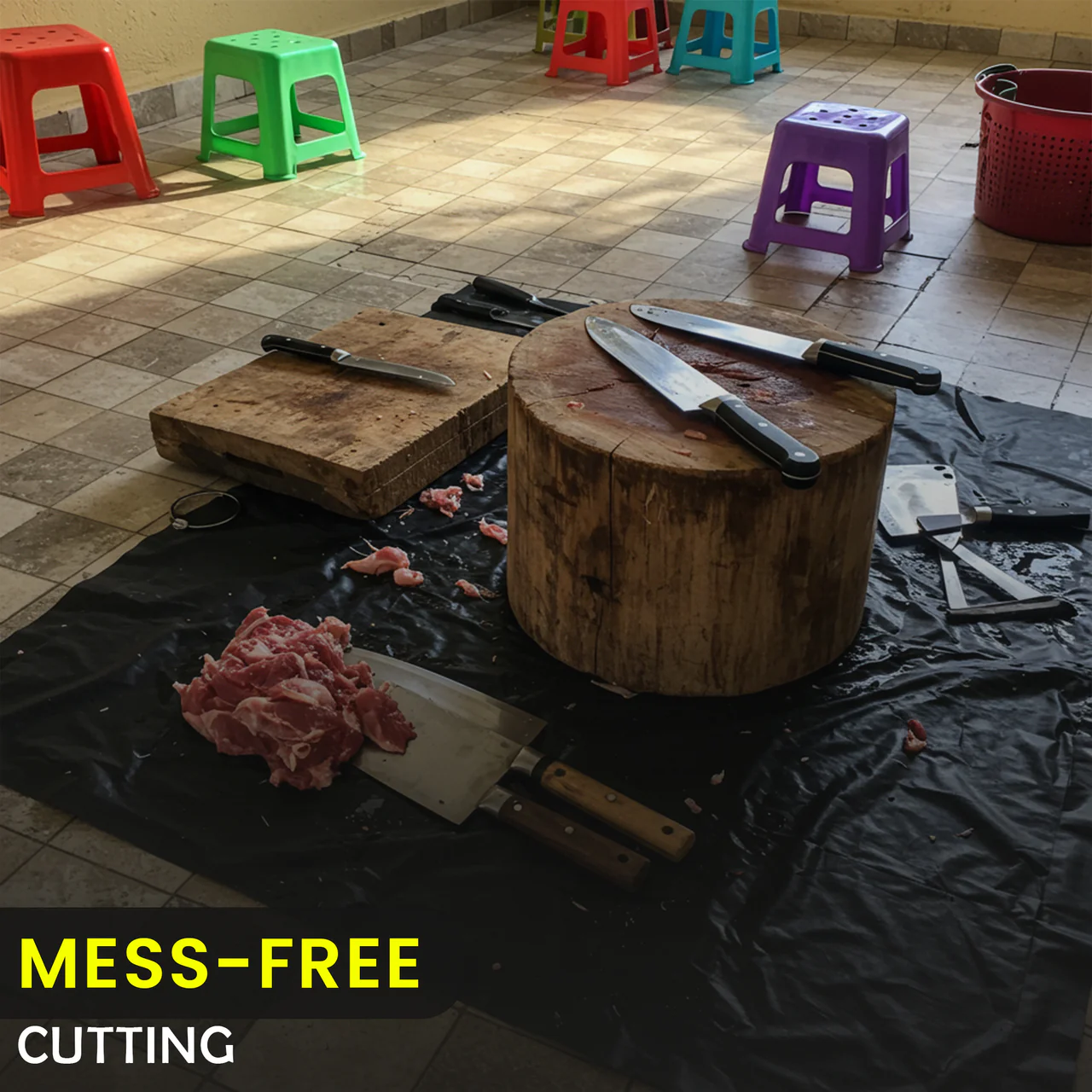 Upgrade your Qurbani and meat preparation experience with our Premium Waterproof Meat Cutting Mat – specially designed to keep your floor clean, safe, and hygienic during heavy-duty meat cutting tasks. Whether you're performing Qurbani during Eid-ul-Adha or preparing meat at home for storage or BBQ, this mat is your perfect companion.
