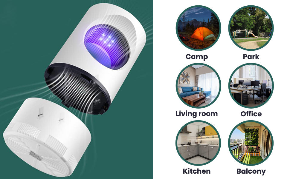 Equipped with 6 high-power 368nm UV LEDs, it attracts mosquitoes into its grid, providing maximum coverage in your bedroom, kitchen, office, or living room.
