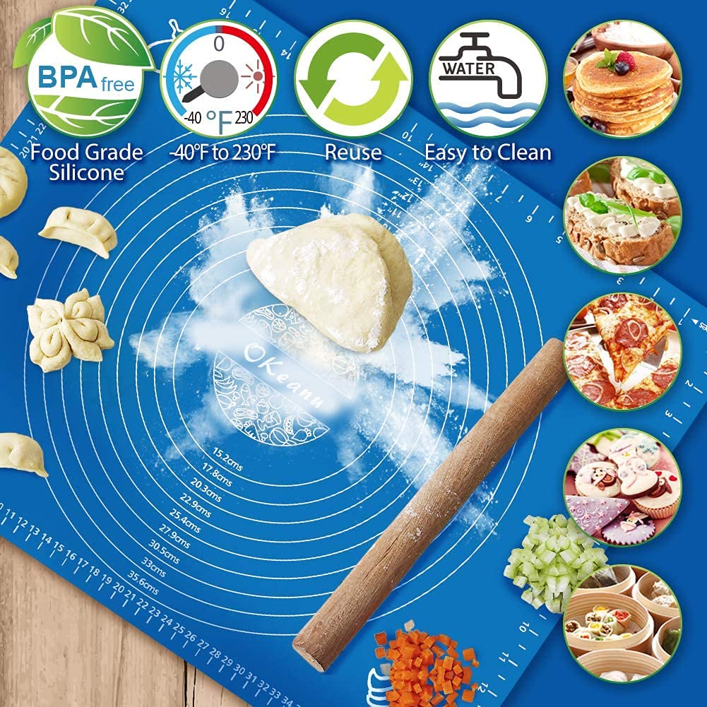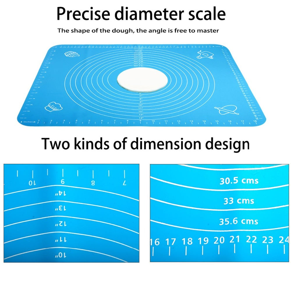 Thick, non-slip pastry mat with measurements—perfect for rolling, kneading, and cutting dough without sticking. Made from durable silicone and fibreglass
